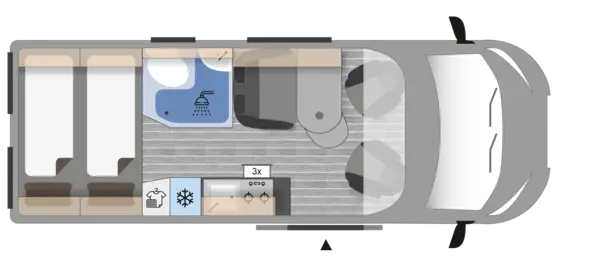 La Clever Vans Celebration 600 destaca por su diseño inteligente con cama transversal de 192×140 cm en menos de 6 metros de longitud. Su nevera ergonómica a altura de trabajo (ampliable a 140L) y la distribución optimizada crean un espacio funcional donde todo está a mano. Con 4 plazas para viajar, 2 para dormir, baño completo y una equipación de serie generosa, el Celebration es la elección perfecta para quienes buscan confort sin complicaciones.