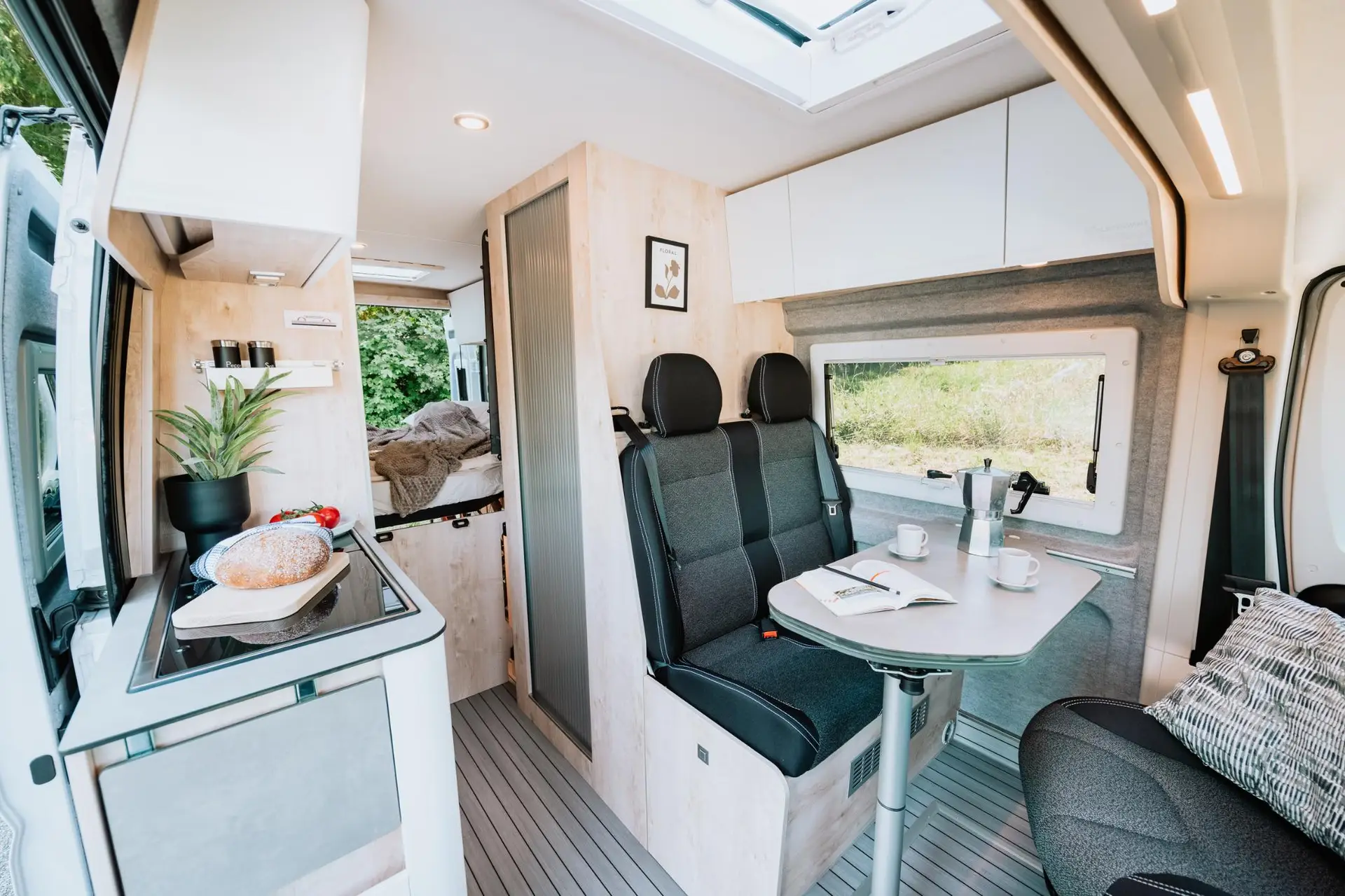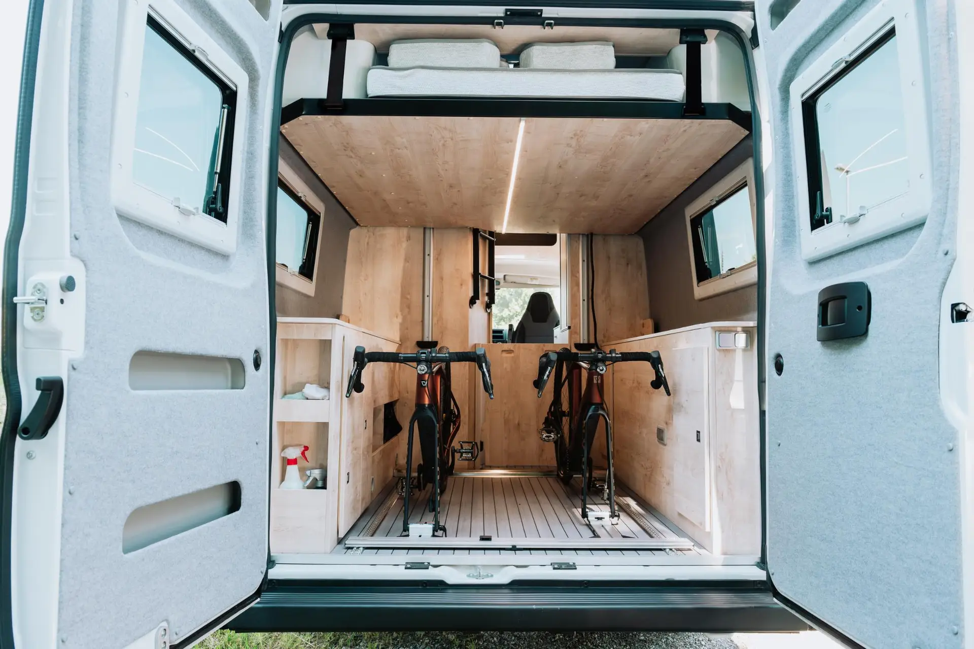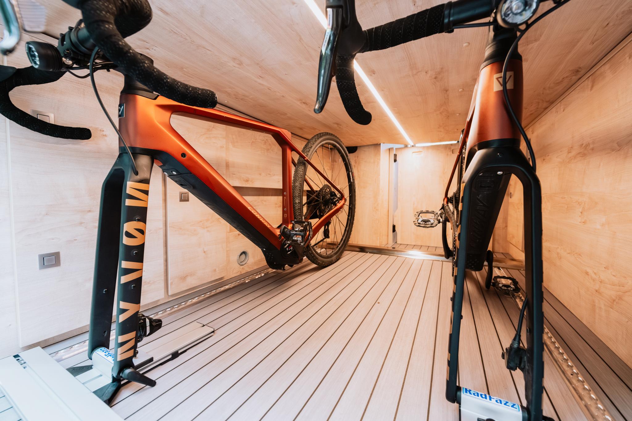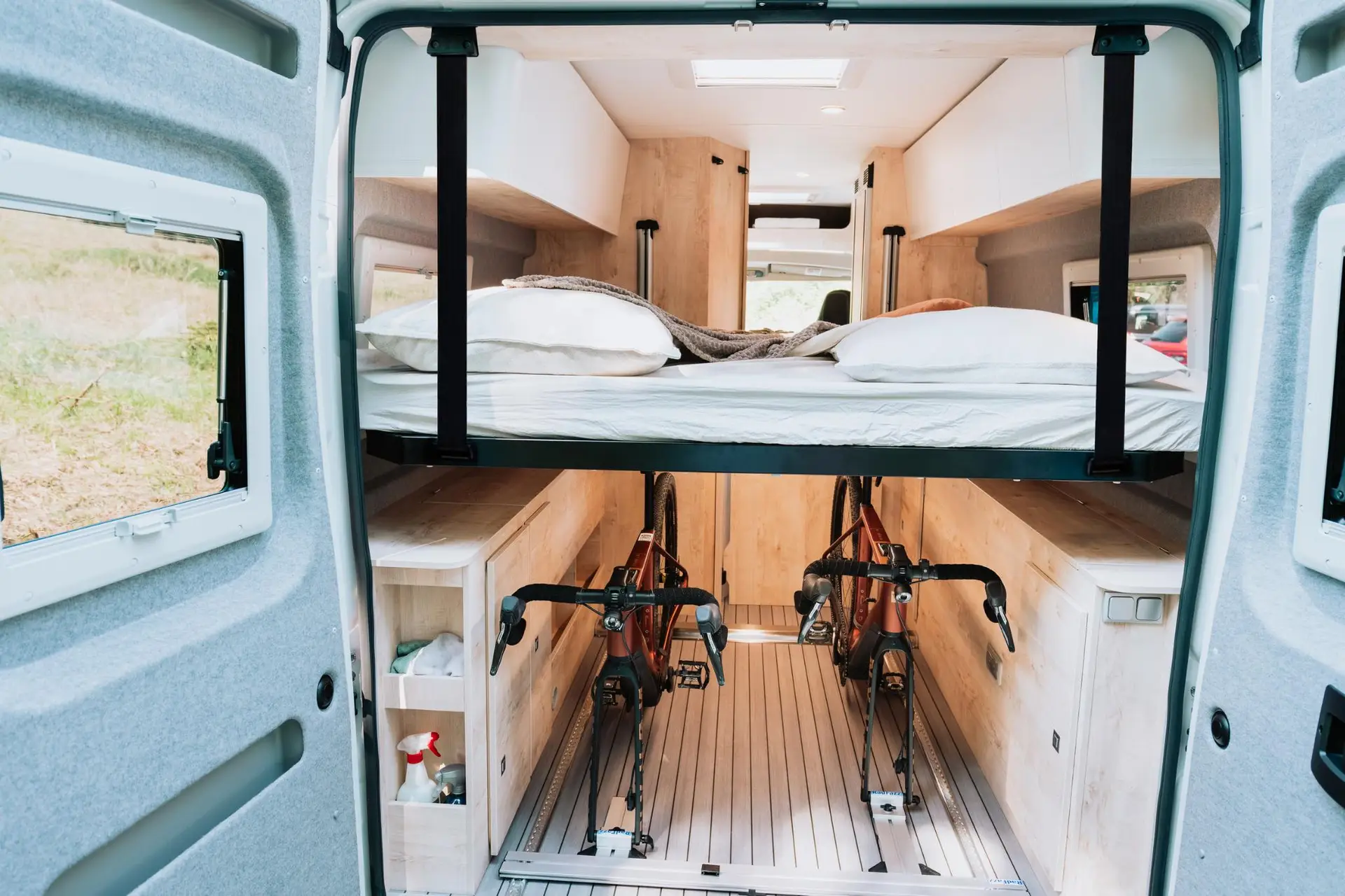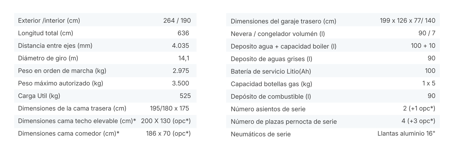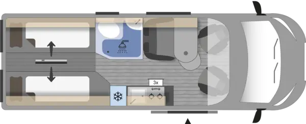 La Runner 636 Active es la camper de los que viven el viaje a tope. Su cama abatible eléctrica libera un garaje trasero extra ancho — espacio de sobra para bicis, tablas y todo el equipo que necesitas — y se convierte de nuevo en cama confortable cuando llega el momento de descansar. Una cocina totalmente equipada con frigorífico compresor de 90L, un baño sin cortina de ducha y una batería de litio de 100Ah garantizan el confort que exige cada etapa. Para los aventureros que quieren llegar más lejos sin renunciar a sentirse en casa.